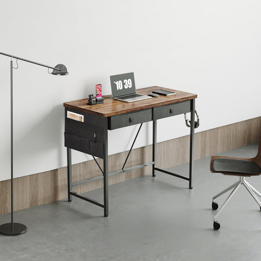 MAIHAIL 40 inch Desk with Drawers, Rustic Brown+ Black