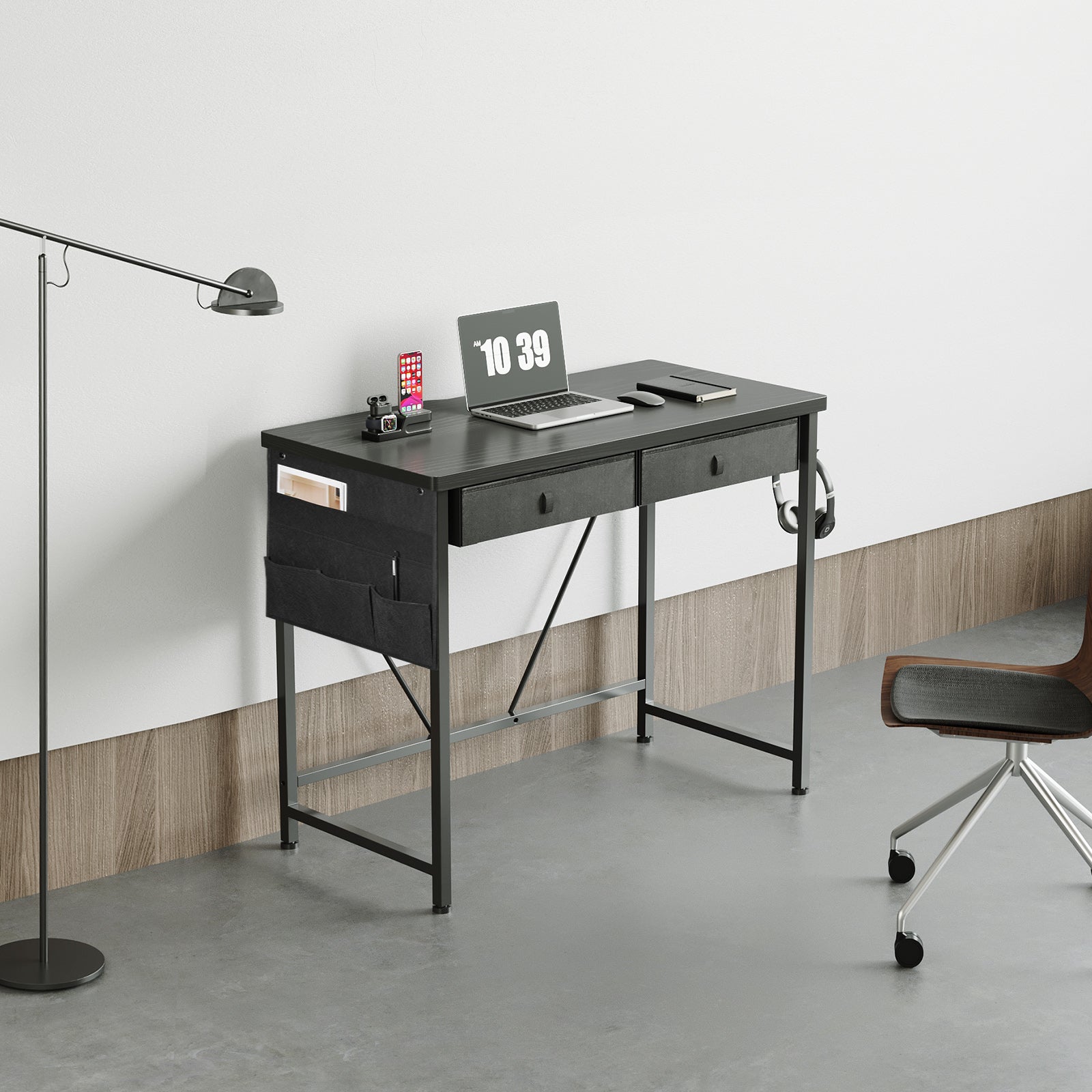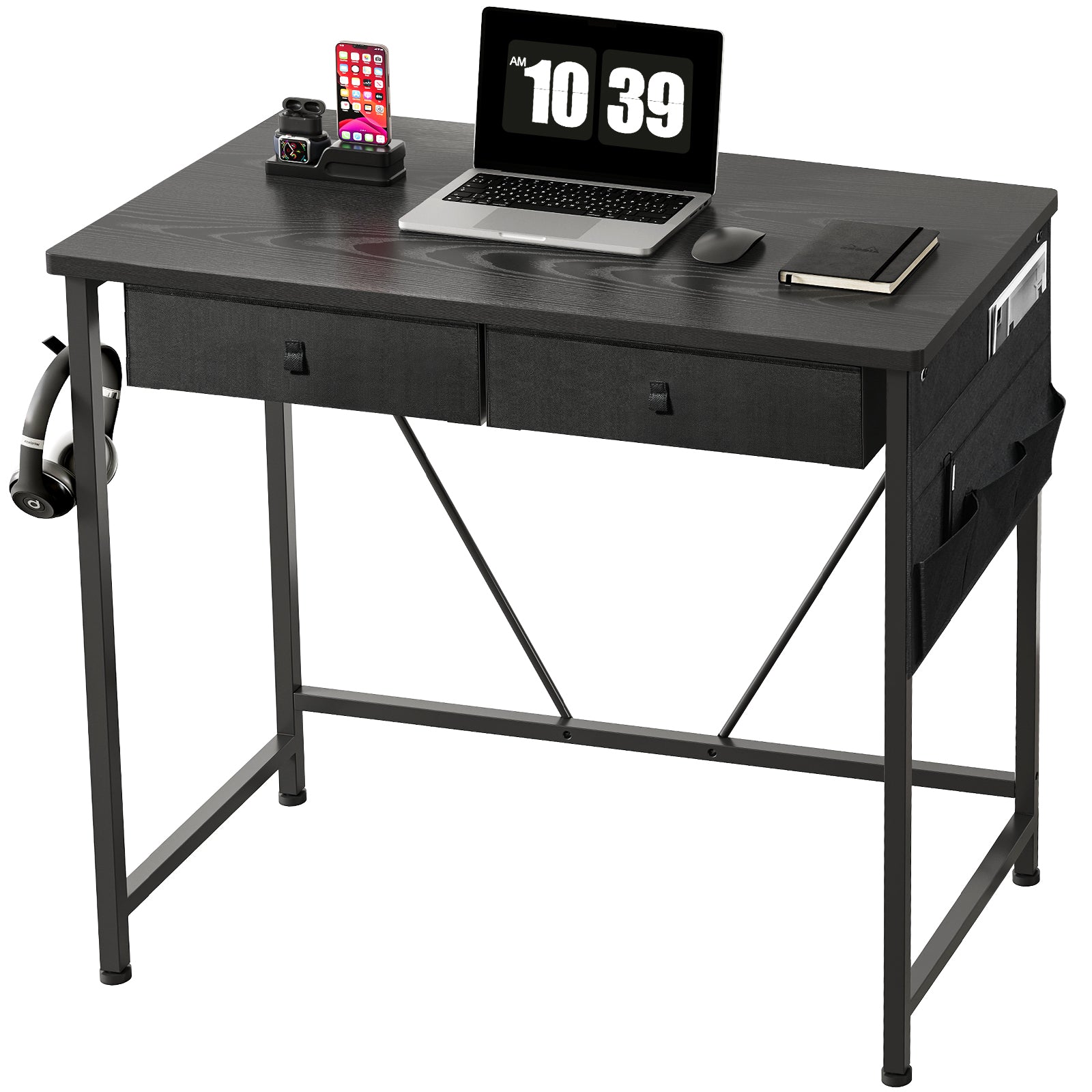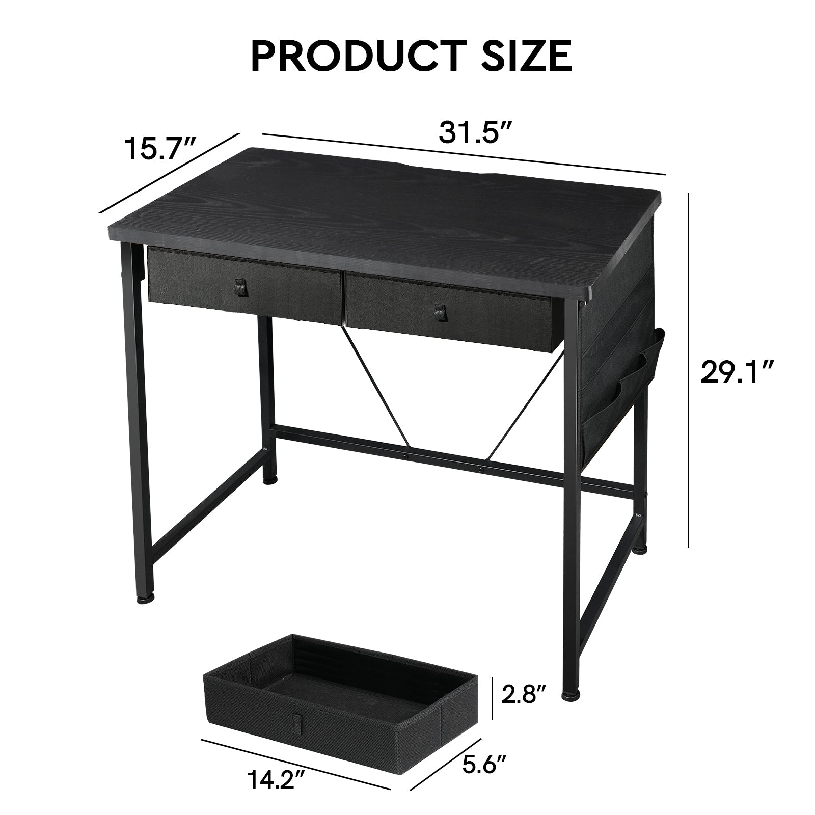 MAIHAIL 31.5 inch Desk with Drawers, Black