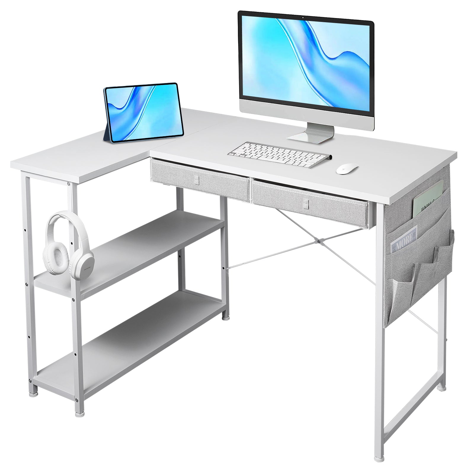 MAIHAIL 39 inch L Shaped Desk, White