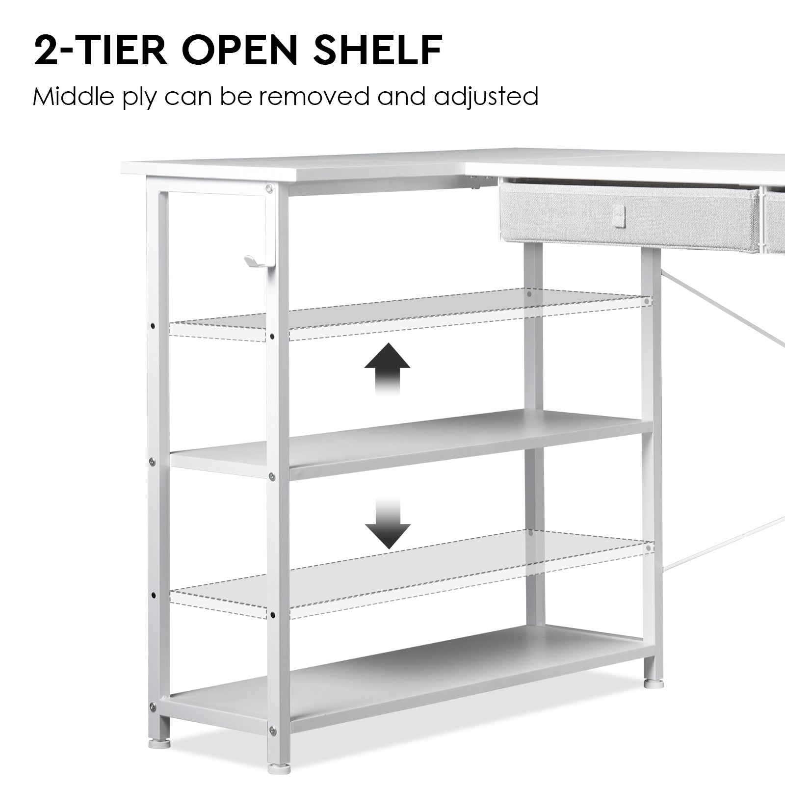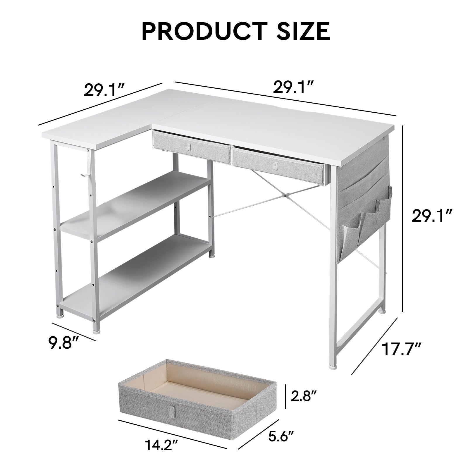 - Enrich Storage Space: Compared with traditional small corner desk, this computer desk adds two drawers, a side storage pocket and 2-tier open shelves for storage . The bottom drawer can accommodate A4 file folders. The extra storage space can more effectively organize the work space in the home or office.