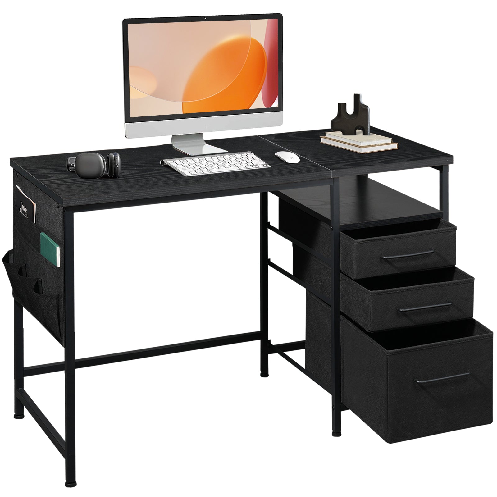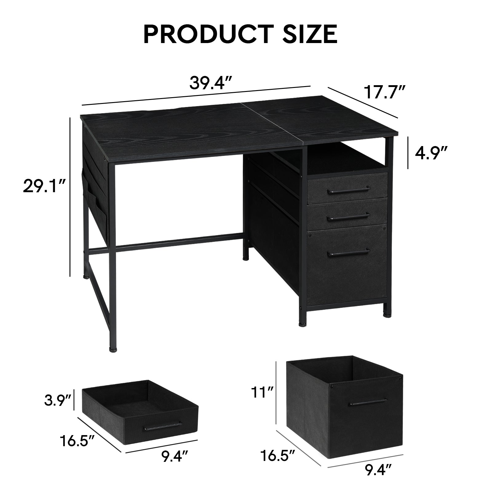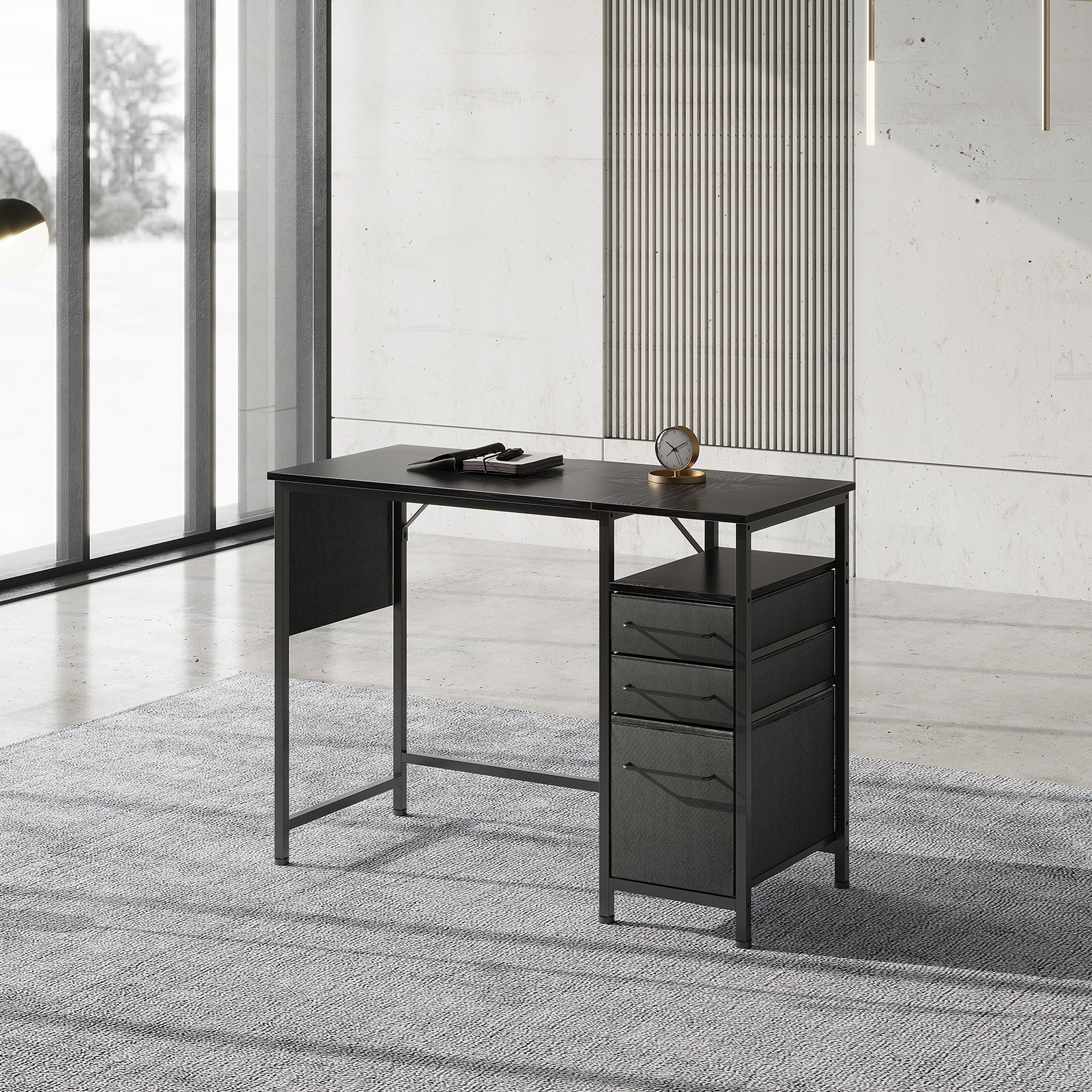 MAIHAIL 40 inch Desk with Drawers, Black