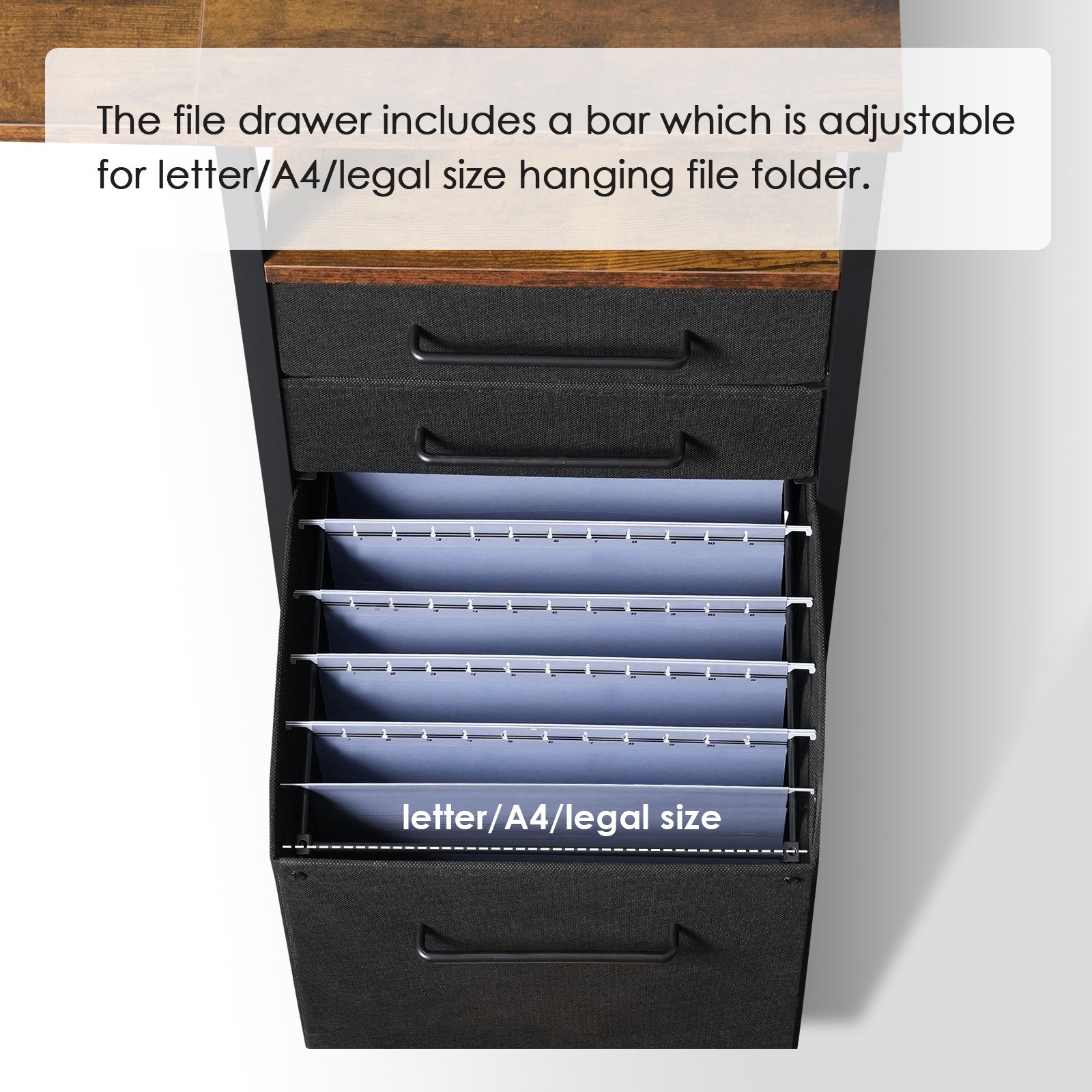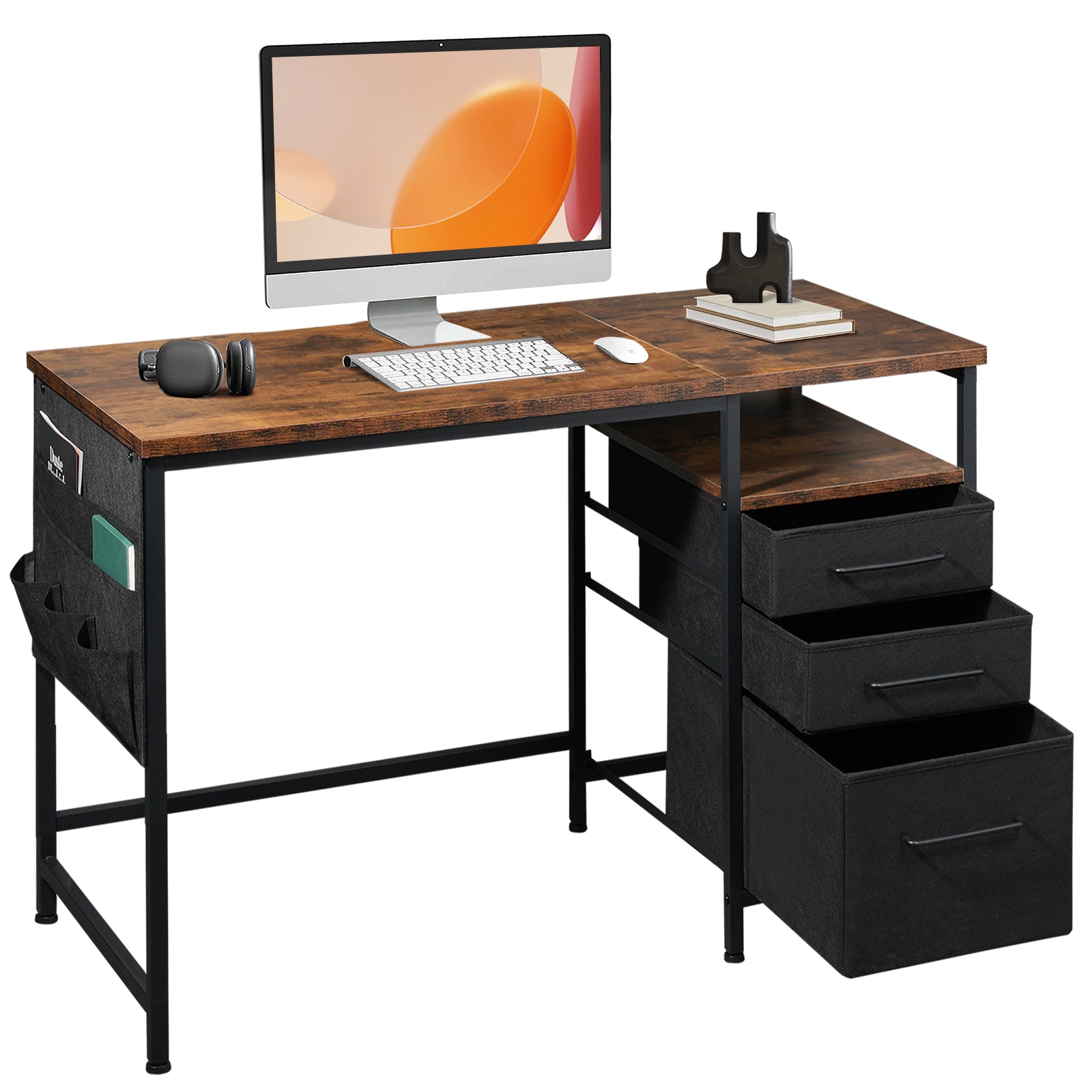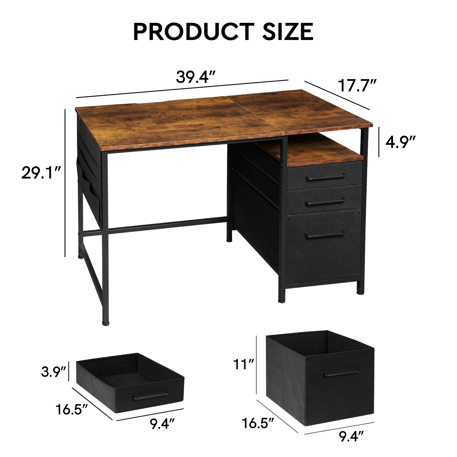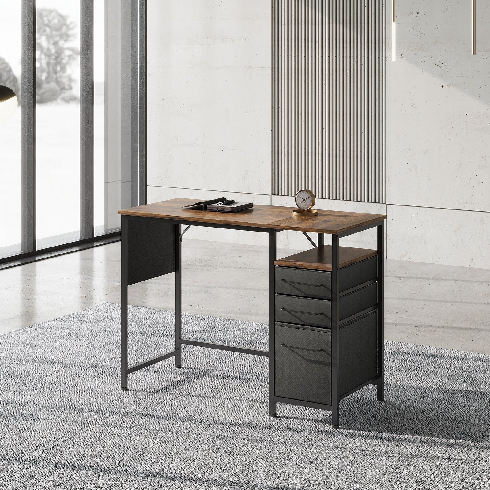 MAIHAIL 40 inch Desk with Drawers, Rustic Brown+ Black