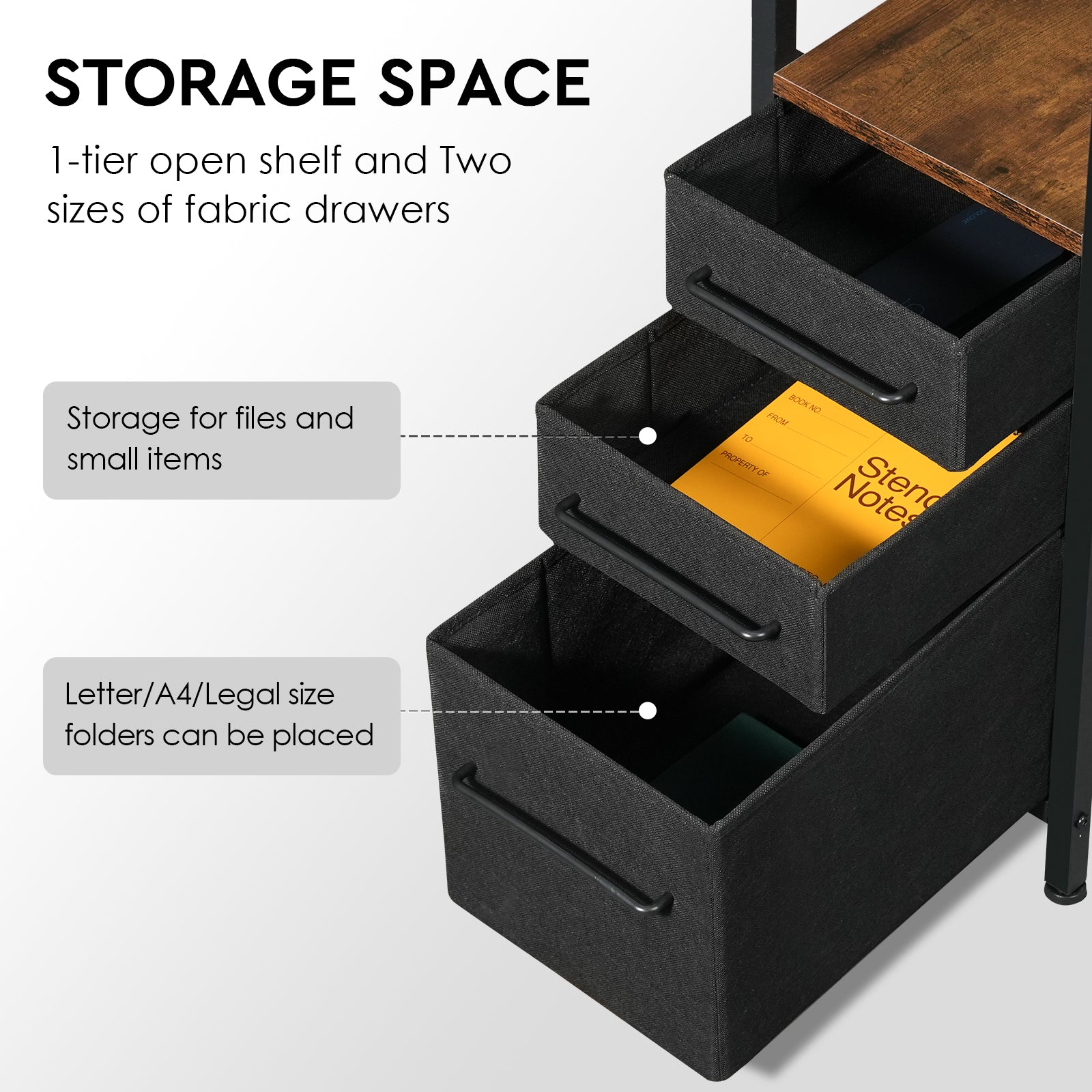 Expanded Storage Space: This mini desk offers superior storage capabilities compared to traditional designs, featuring three drawers, a lateral storage pocket, and a 1-tier open shelf. The bottom drawer is sized to accommodate A4 file folders, greatly enhancing workspace organization at home or in the office.