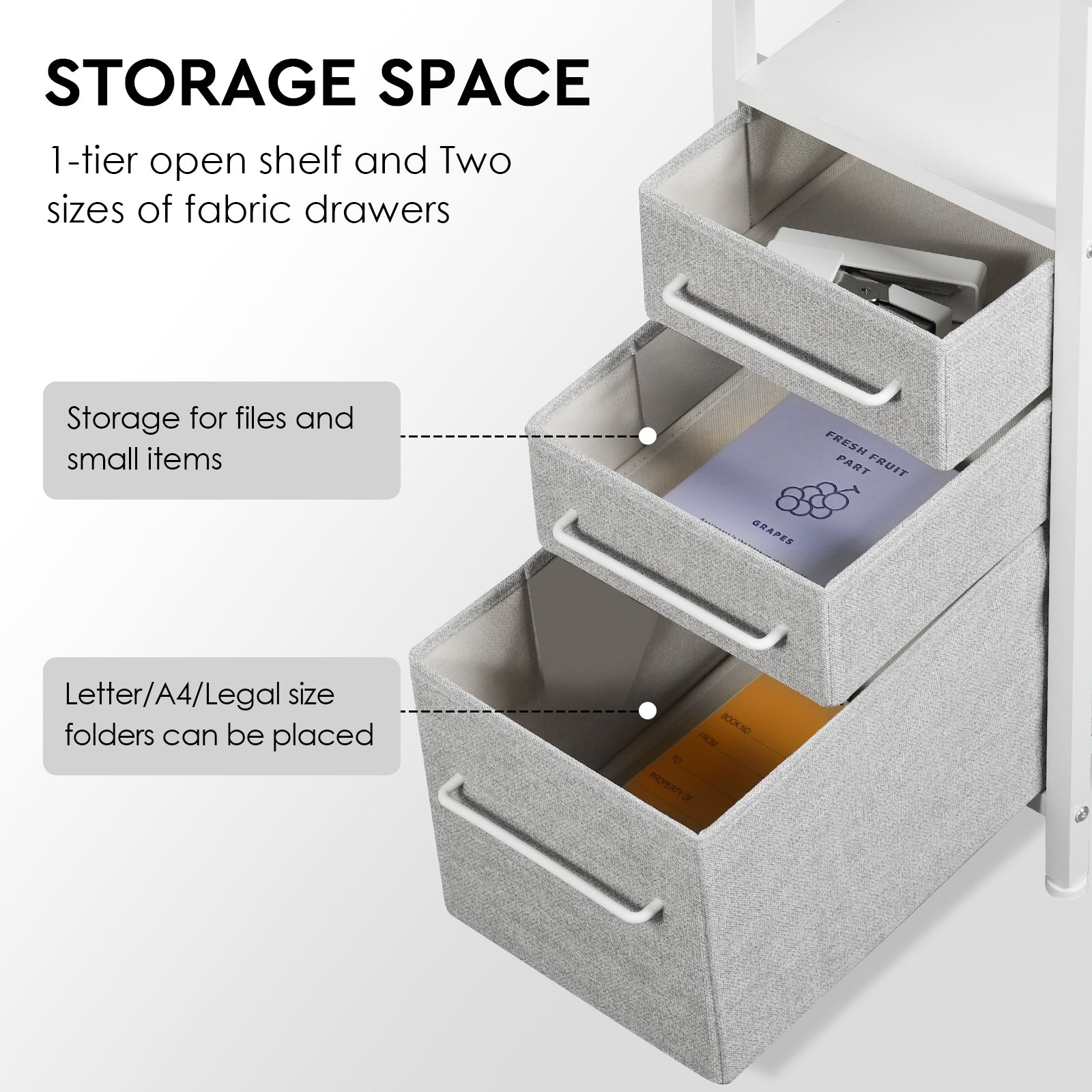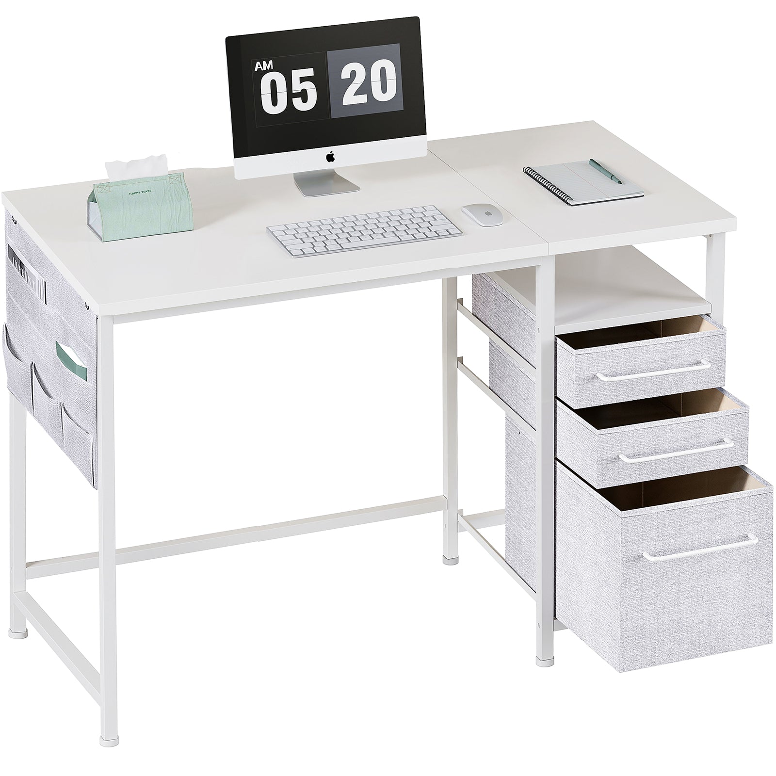 - Enrich Storage Space: Compared with traditional desks, this small desks for small spaces adds three drawers, a side storage pocket and 1-tier open shelf for storage . The bottom drawer can accommodate A4 file folders. The extra storage space can more effectively organize the work space in the home or office.