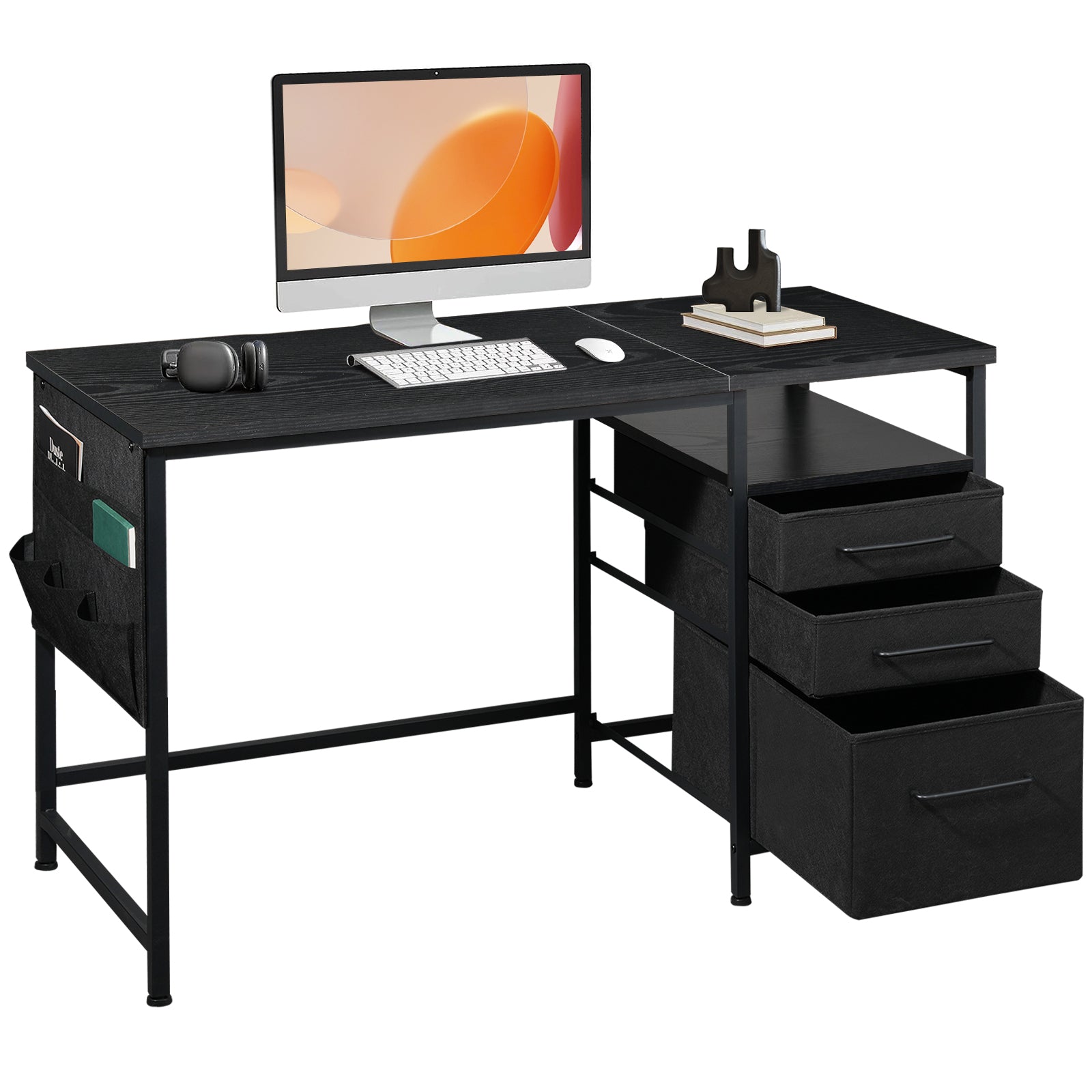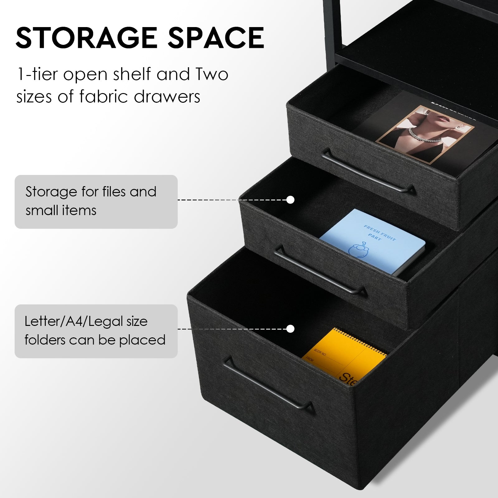 Expanded Storage Solutions: Unlike traditional desks, this computer desk offers expanded storage with three drawers, a handy side pocket, and an open shelf. The bottom drawer conveniently holds A4 folders, enhancing workspace organization.