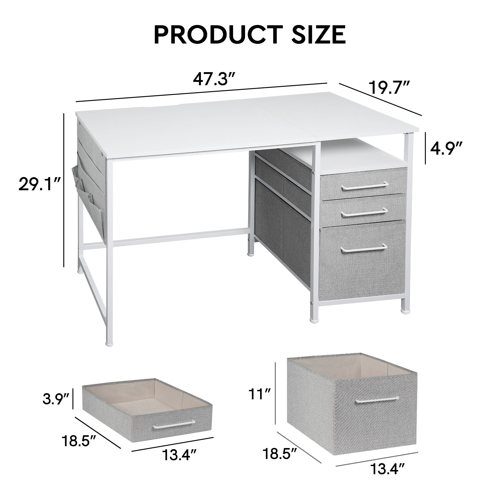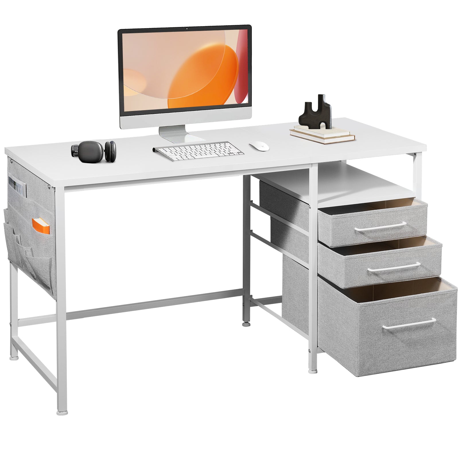 Enhanced Storage Capabilities: This modern computer desk boasts three drawers, a side storage pocket, and a one-tier open shelf, all designed to optimize workspace organization. The bottom drawer is spacious enough to hold A4 file folders, ensuring a tidy home or office environment.