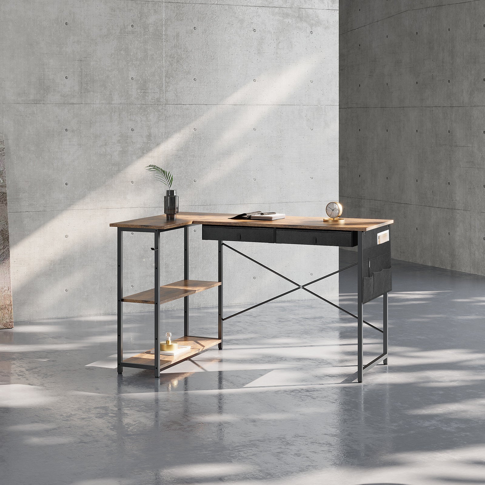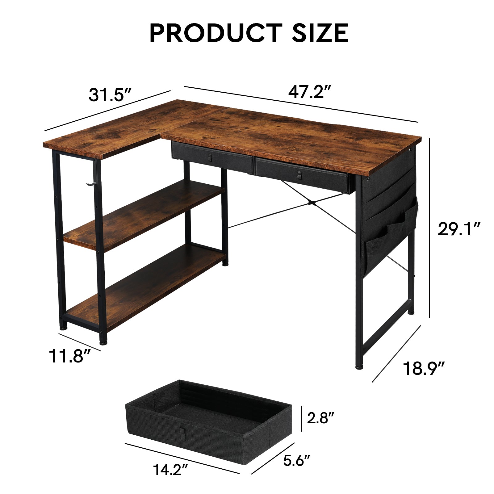 MAIHAIL 47 inch L Shaped Desk, Rustic Brown