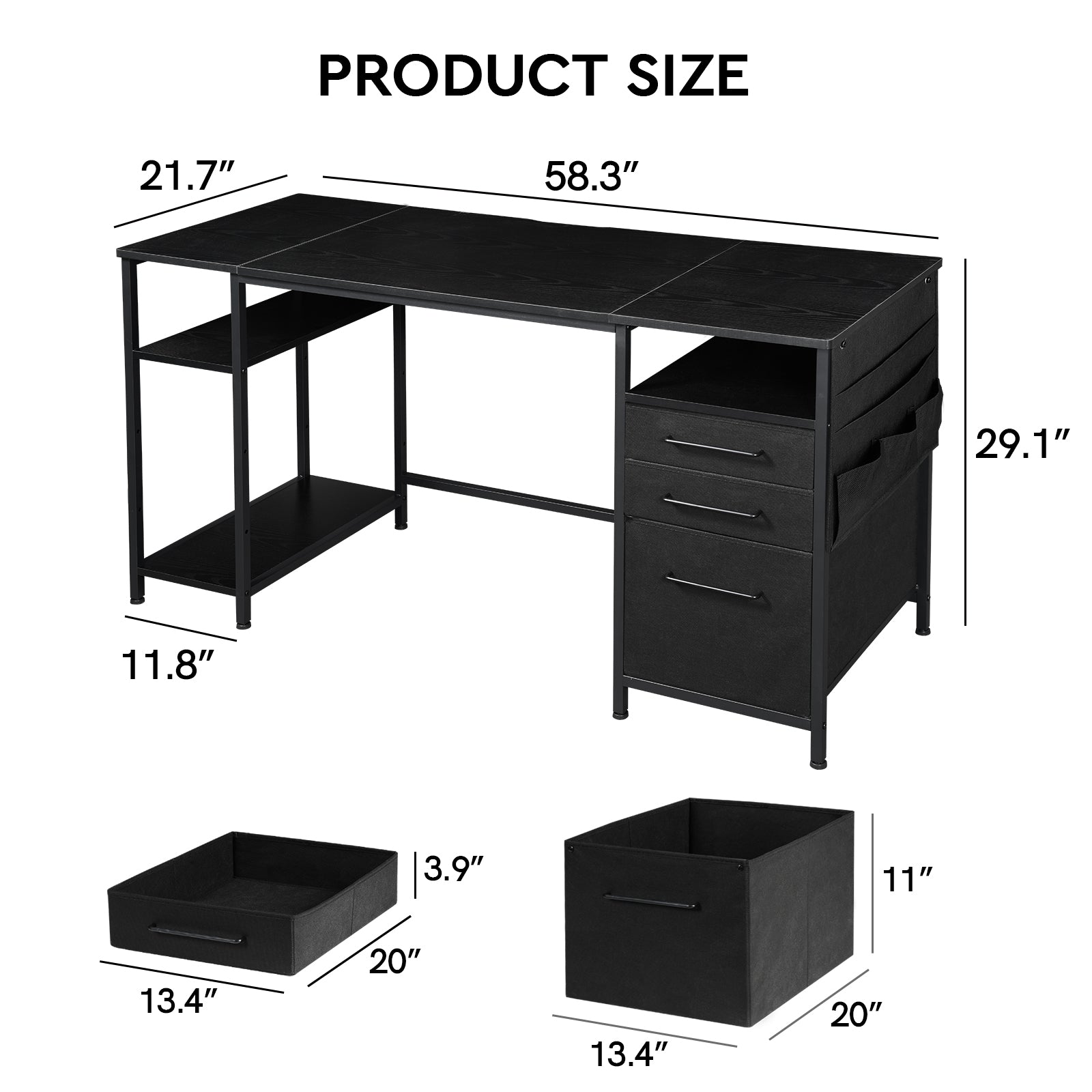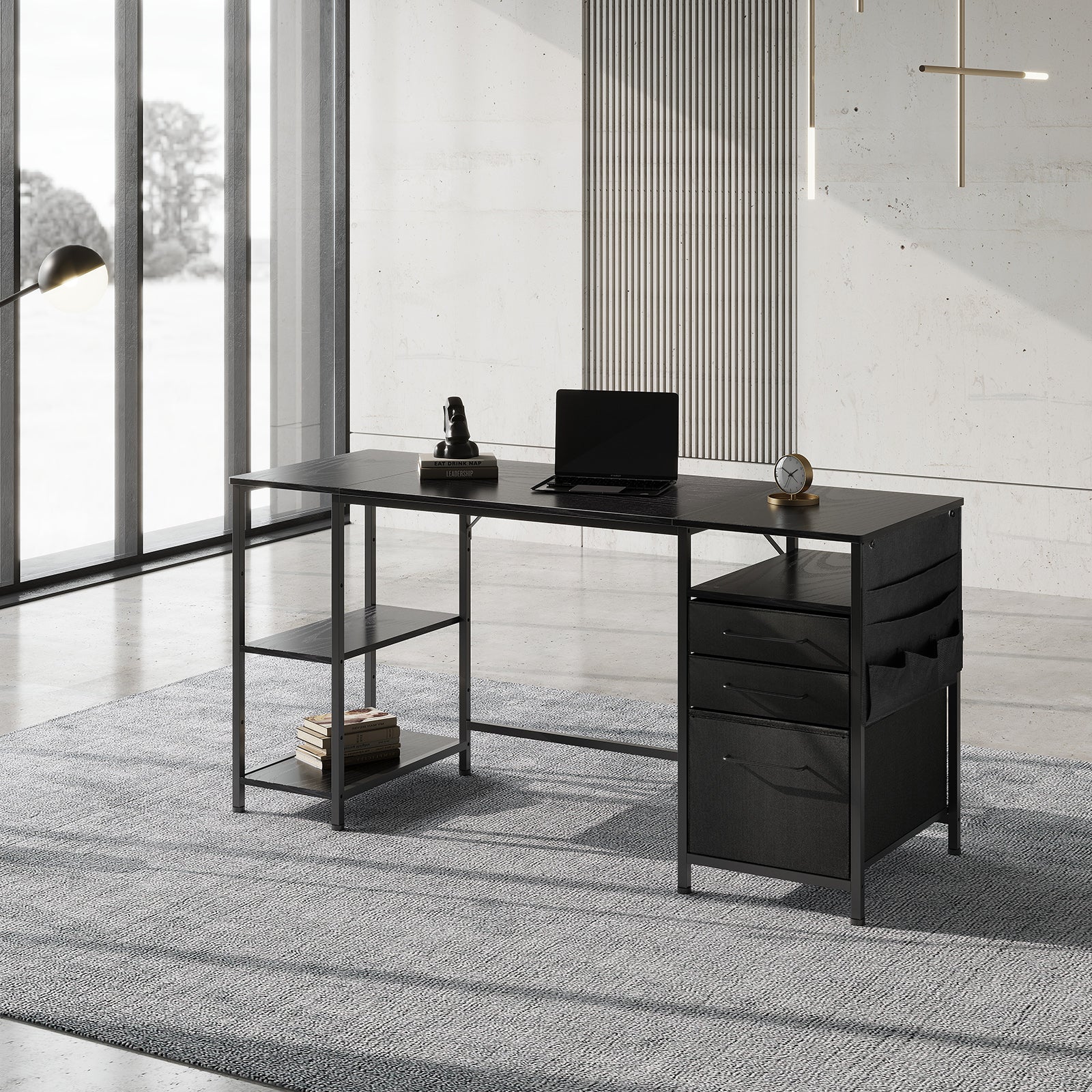 Expanded Storage Space: Unlike conventional desks, this extensive desk incorporates three drawers and a single-tier open shelf, offering ample storage options. The bottom drawer is designed to accommodate A4 file folders, optimizing workspace organization in both domestic and office settings.