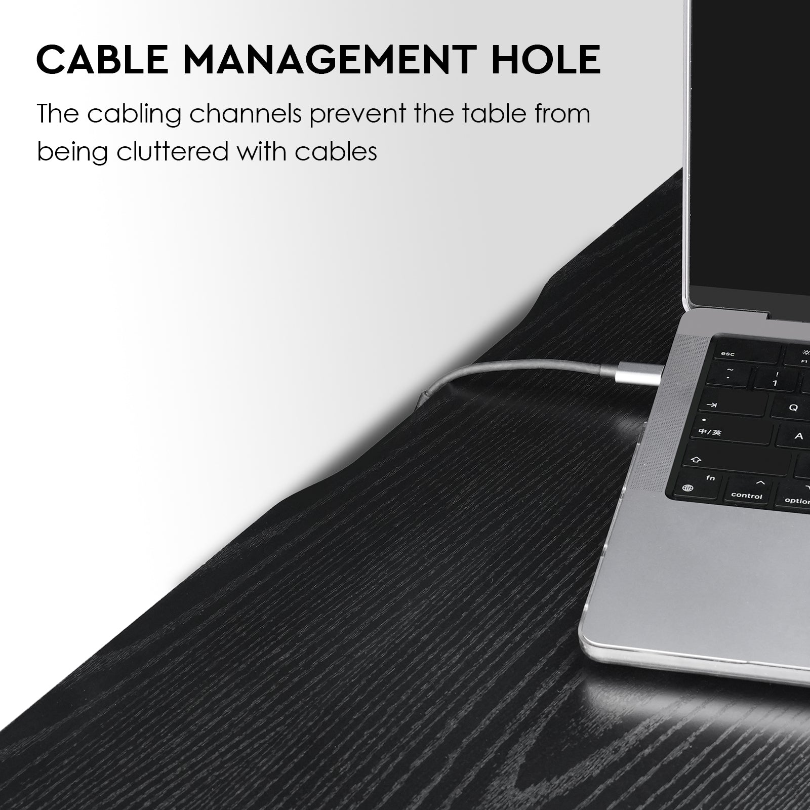 Ergonomic Design Considerations: The desktop's rear includes a gap for charging cables, enabling seamless attachment to the wall. Adjustable feet ensure a level surface, even on uneven floors.